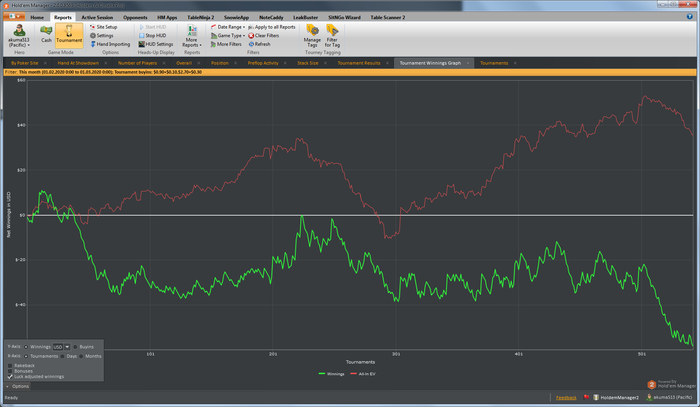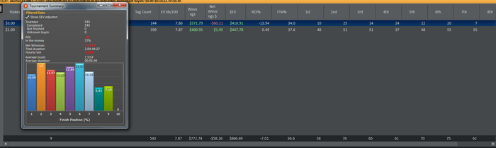 Неутешительные итоги месяца. Минусовый февраль вышел, вот неприятно блин капец просто. Вроде что-то новое изучил, а по факту толку нету. Сыграл 543 турнира из них 144 за 3 бакса, 399 за 1 бакс. -58$, общий рой -7% и ев рой +4%