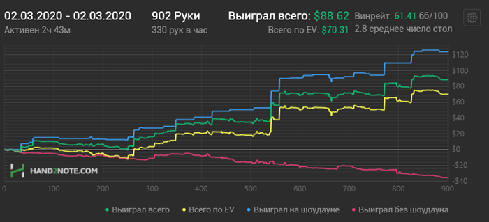 если бы не дурацкое желание попиздиться с регами(удачность идеи на 7/10 ибо все таки они частенько фолдили на блеф) в небольшом тильте было бы +2 стека 25ки вообще я заметил что мой животный тильт сьедает очень много моего винрейта