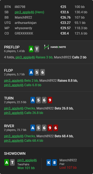 pin3_apple46 @ 7.3.2020 Велью или блеф?( похоже на сет либо раннер раннер, хотя рейзить бекдор на флопе наверное здесь глупо ,лимп АА? не закрывшиеся дрова?)