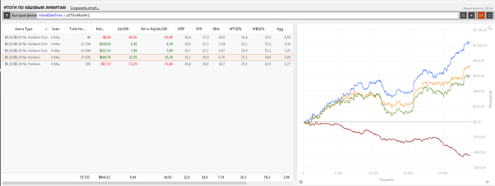 Kol_Al_Ol, Привет, очень много статей, курсов просмотрел, книги читал на начальном этапе, но сейчас занимаюсь так: смотрю видео, стримы успешных игроков высоких лимитов и приминаю на практике увиденное, то что подходит для моего лимита - оставляю в своем арсенале, то что нет, не использую. Мой подход в подстройке к каждому лимиту и к каждому типу игроков, могу посоветовать афилейта, не в целях реклами Пекаря Стаса, очень толковый парень и много полезной инфы на его сайте. А тебе конкретно дам совет: на твоих лимитах нужно играть очень тайтово, все оплачивают твои натсы и велью руки, то есть сузь префлоп диапазон, и никогда не колируй рейз на ривере, не бет, а именно рейз, есть дро или возможность усилиться - рейз, нету бекдоров и ты без позы - фолд, играть нужно ояень примитивно и просто, и еще одно - весь профит используй на рост по лимитам, это очень важно, если это возможно. Когда я добьюсь своей цели, я планирую обучать игроков низких лимитов, первые 5-10 игроков получать обучение бесплатно, надеюсь это будет в ближайшие месяцы.