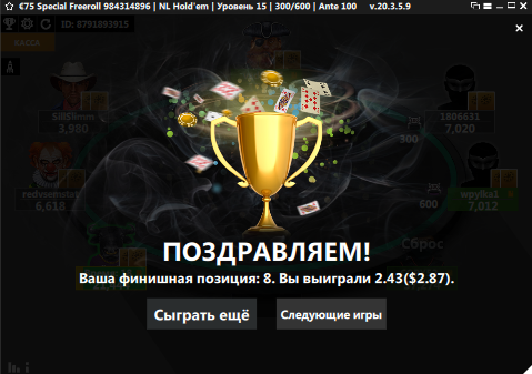 3) Покер Дом --> 1010.00 ₽