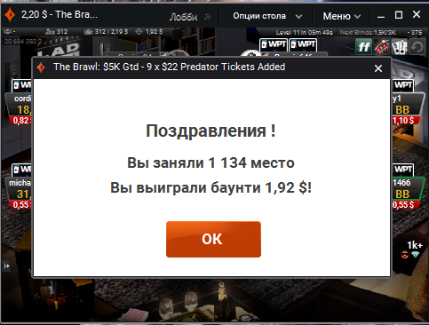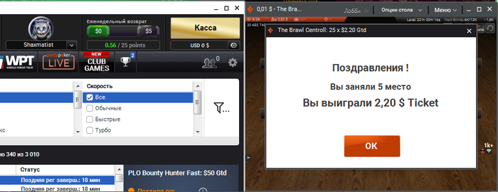 1) Party Poker --> 150.22 $ + 5 $ рейк + WPT World Online $33 Ticket#