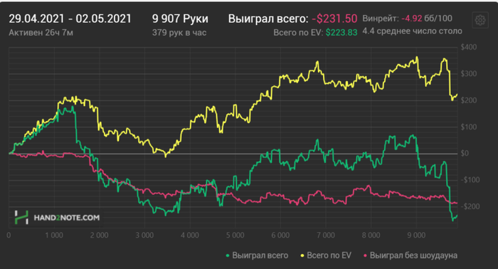 Ну а дальше тут каждый месяц есть (март, апрель), по моему всегда небольшой недобор. Пиздец. Уже недодали банкролл на какой-нибудь 9 макс за три дня на шоте лимита