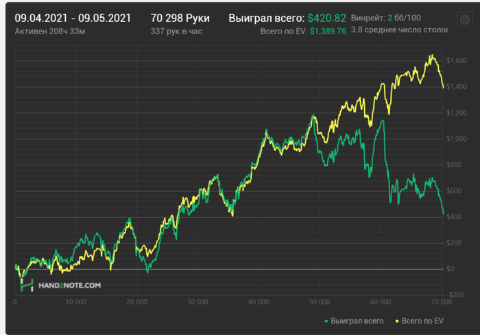 Последние 1к рук кста. Я приблизился к какому-нибудь рекорду в бб за 1к рук ?