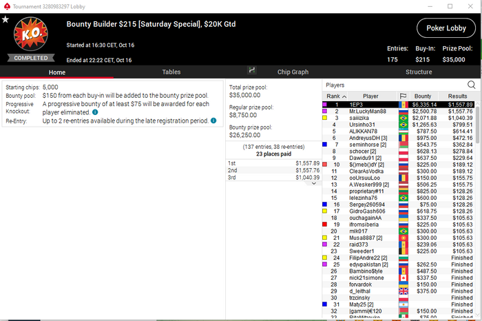 ♠ В связи с эпидемиологической ситуацией, серия Гранд Финал PokerMatch UA Millions, которая должна была состояться с 26 ноября по 5 декабря в Киеве, переносится на январь 2022 года ↩️