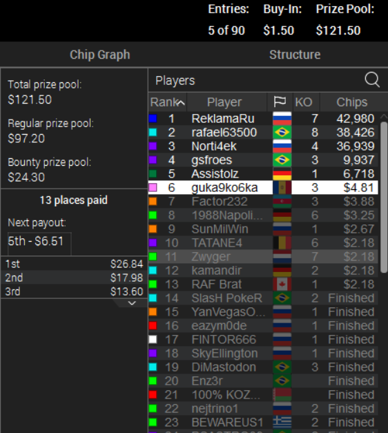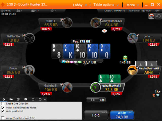 Привет, играю относительно недавно, учусь, часто пересекаюсь с тобой за столами, увидел знакомый ник и зашел ) играю 1.5 и 1-ки не турбины, думаю ты меня видела ) удачных сессий. Помечю тебя регом )