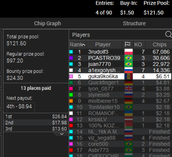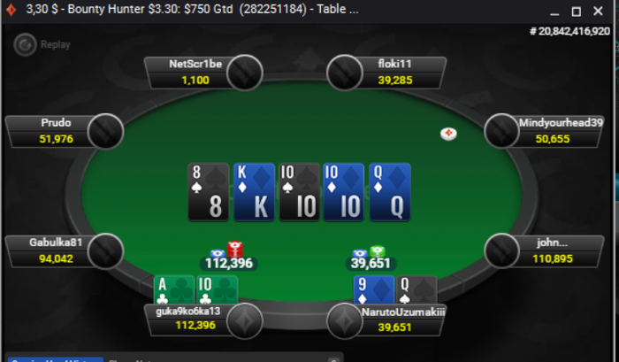 А теперь про раздачи : Эта раздача была с регуляром, после моего сквиза, я понимала ,что в его диппазоне нет , так как мы бы выставились на префлопе, а вот на флое я ЗНАЛА , что у него сет либо , либо , мой тайм банк заканчивался, но я не смогла выкинуть (в этом мне стоит учиться и фолдить)