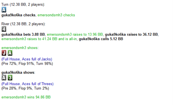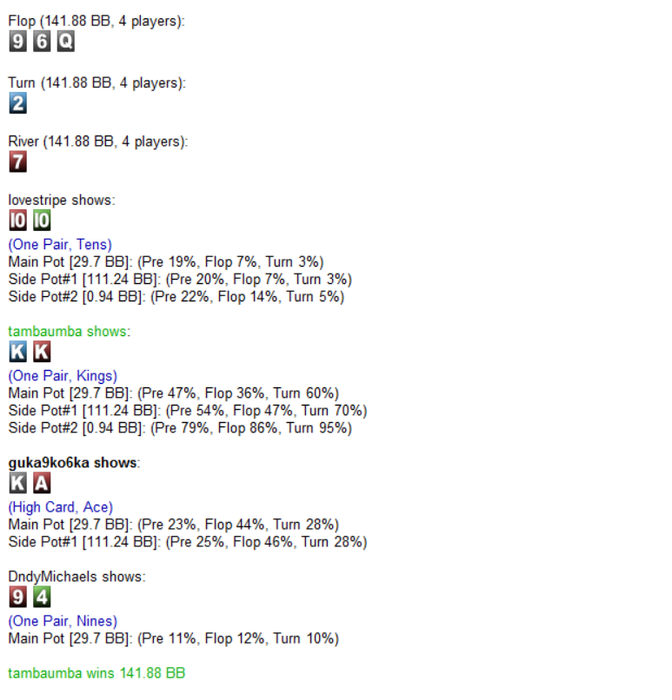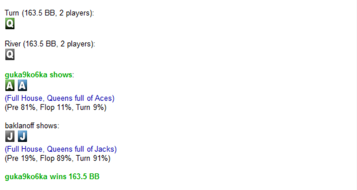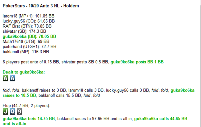Да, я тоже чаще в такой линии видела , но королей сложно выкинуть, при том, что у нас стеки не глубокие, после изоляции у меня 32ББ осталось В в раздаче на Party ,чел переиграл свою руку, как мог, если четно, я не часто такое вижу