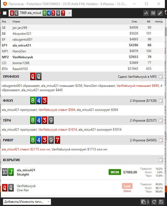 Mr_Vannekuryuk @ 5.12.2020 в таком ключе сейчас катаю 15шка на 18 Блядь,аж потряхивать начало.Забыл когда такой трешак видел последний раз,к ряду.все столы.