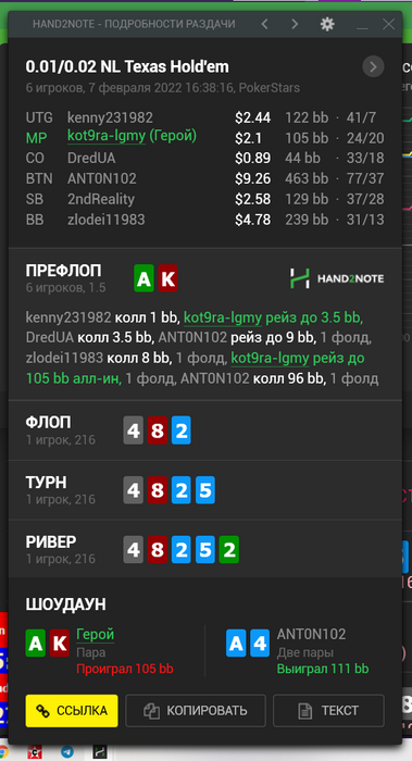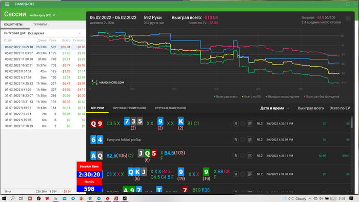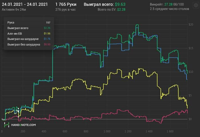 Играл днем, если будет настрой может сыграю еще 1к рук ночью. Начал разбирать теории игры против хобби игрока.