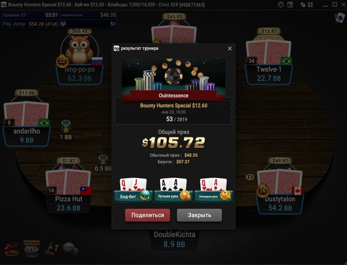 Если вы зарегистрированы в покер-румах через GipsyTeam, вы получите статистику рейка, бонусные очки для покупок в магазине, эксклюзивные акции и расширенную поддержку.