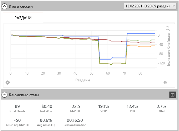 Проблемы следующего плана: 1. Плохо играю АК. Ставлю 4бет-пуш. Не стоит. Сегодня 2 раза в ракет упёрся. Давно уже это заметил, но продолжал так делать Перестал в процессе сессии и стало гораздо лучше. 2. Переоцениваю ТПТК и ТПГК. В процессе сессии стал более адекватно относиться к ним и лучше стало. 3. Ну и продолжаю таскать на ШД хлам, хотя уже меньше, чем раньше. Но это причина и в вышеизложенном.