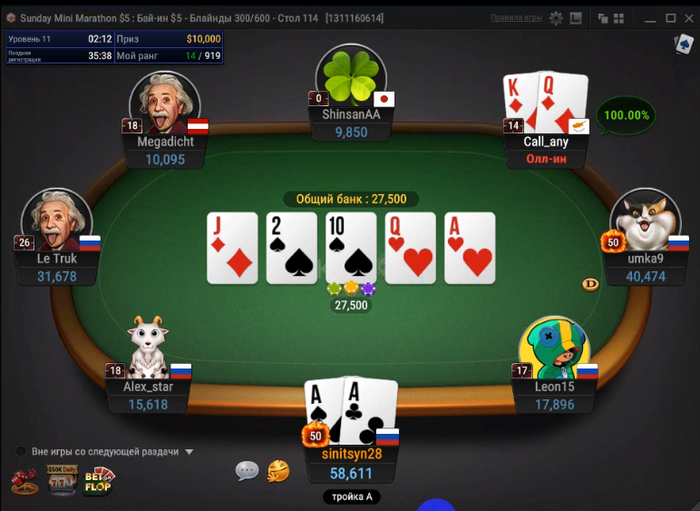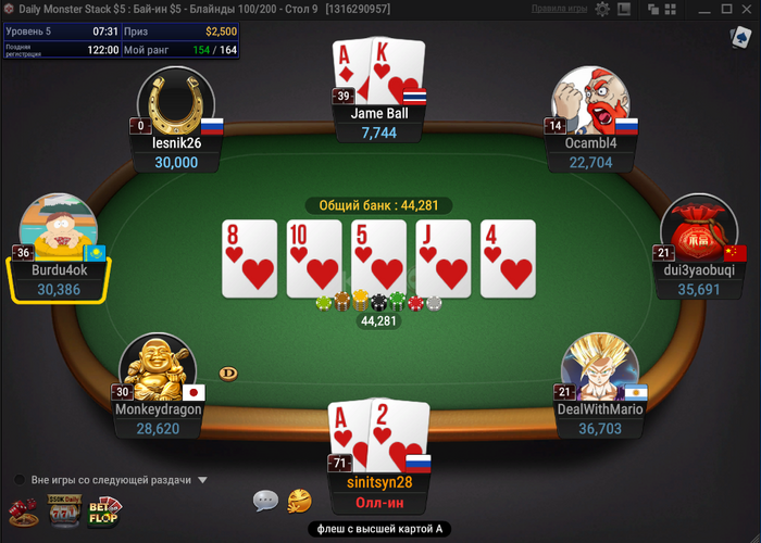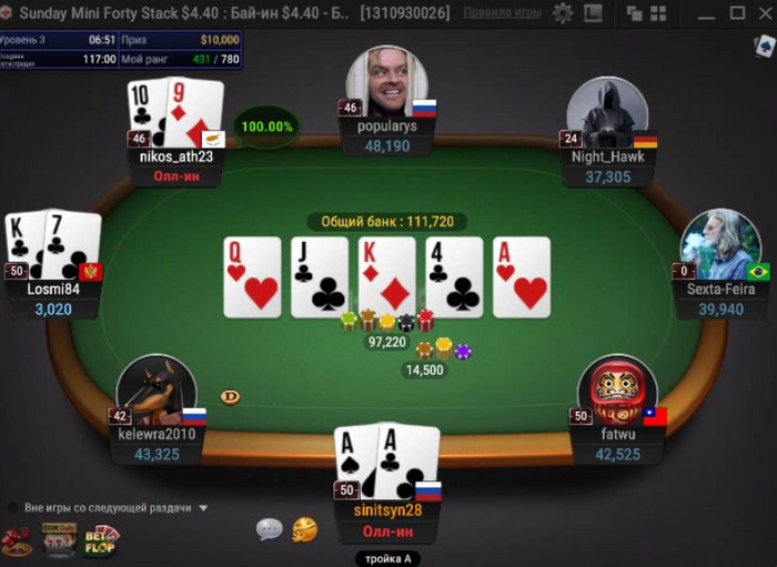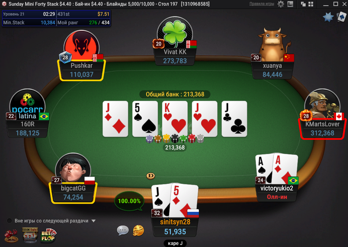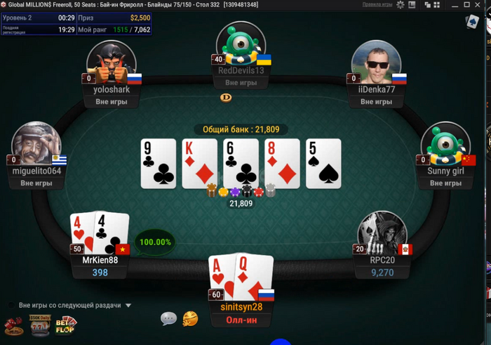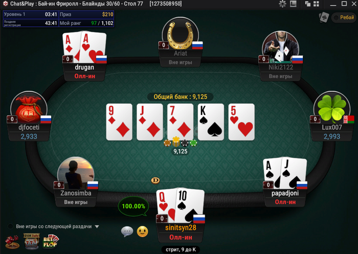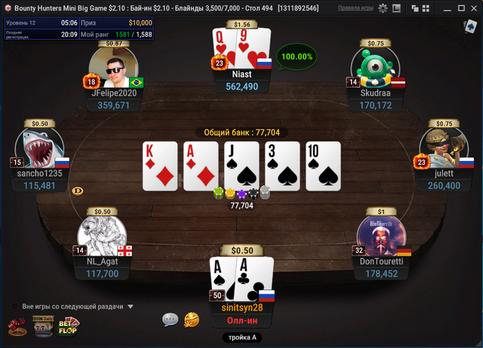 турнир на стадии бабл бой смотрел видео и случайно кликнул ну так получилось что я сделал рейз дали флоп итд и вот итог...