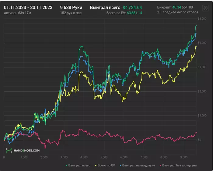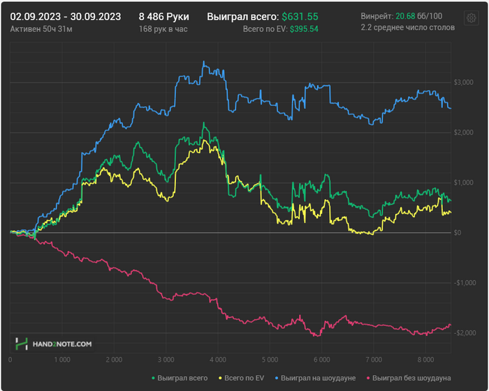По покеру, месяц вышел нормальным. Х2Н как обычно потерял кучу раздач, но думаю плюс минус так все и вышло. Ну и небольшой бонус, что на следующий месяц, получил H2N ASIA от GT+ бесплатно
