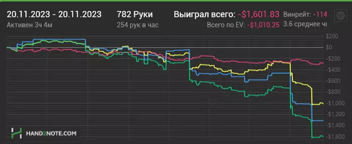Только сейчас понимаю, пока пишу этот пост, что данная игра ни фига не нл200 была, а все нл400 и даже выше, с учетом анте, но когда я за него садился, об этом мой мозг решил не думать.