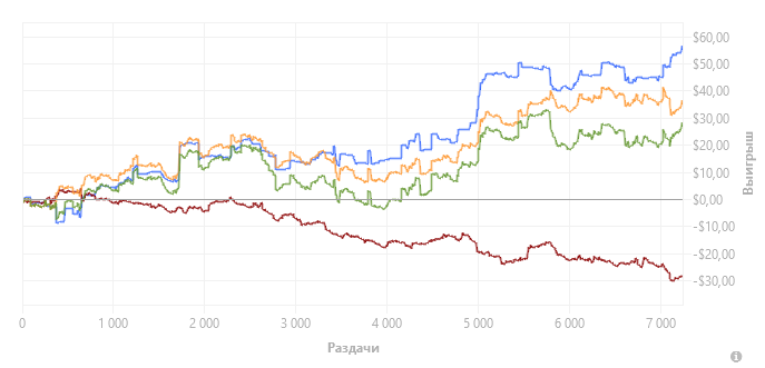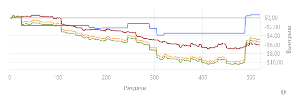Могу сказать, что психологически восстановился. Перестал к покеру слишком серьезно относиться. Я стараюсь наслаждаться процессом и играть в качественную игру (насколько я способен). А вопросами выигрыша/проигрыша не заморачиваться. Знаю, что имею плюсовое ожидание, остальное не волнует.
