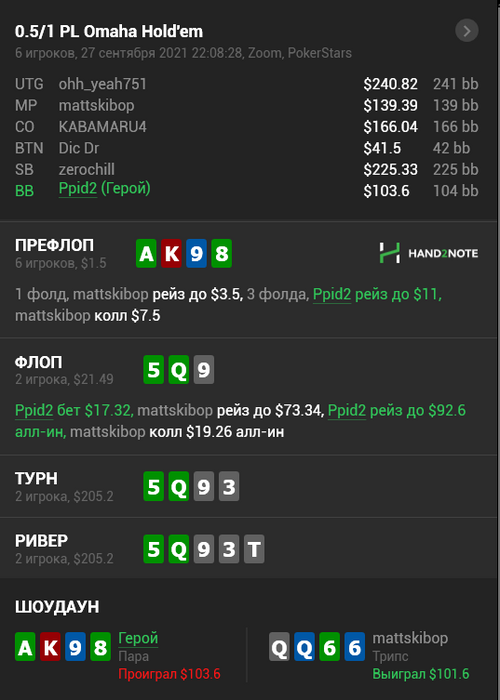 А по раздаче, любой сет ставит флоп, фд с королём ставит флоп тоже почти всегда(ИМХО), дамы тёрн не рейзят, соответственно фуллы на ривере отпадают, а для натс флеша туз самая худшая карта и там в 90% случаев чек-бех должен быть или какие-нибудь 20-30%. Дорого конечно, но не смог выкинуть, мб ошибка, т.к ривер никто не блефует вообще, но опп неизвестный
