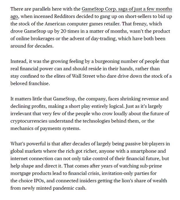 любимая илоном ирония. в случае если по доге зафомоёбят дядьки в срогих костюмах, наконец-то именно простые диванные дегенераты в трусах и тапках за компом будут в них разгружаться а не наоборот.