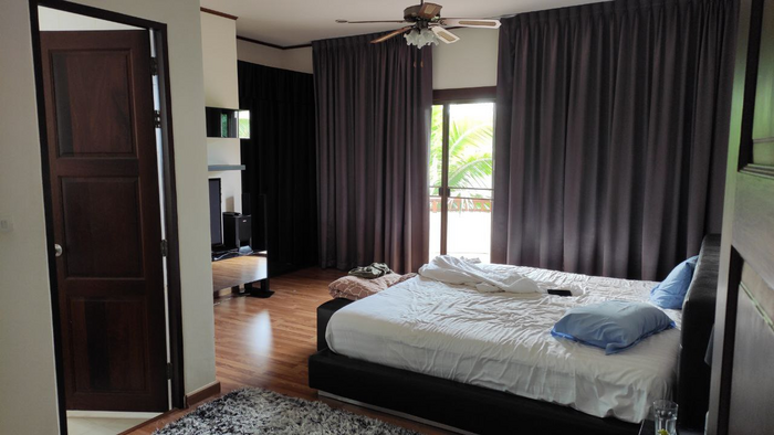 Первый этаж. Зал + кухня + столовая, все в одном. Там вот возле кухни открытая дверь - там прачечная (со стиралкой которая умееть греть воду! Для Тая это вообще роскошь) и из нее выход в сад (2 дерева и газон)