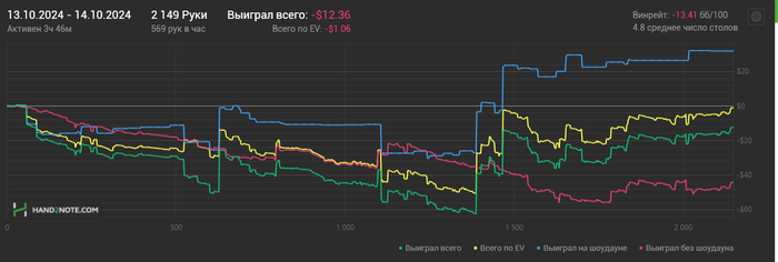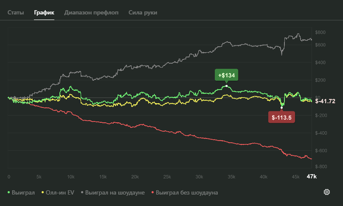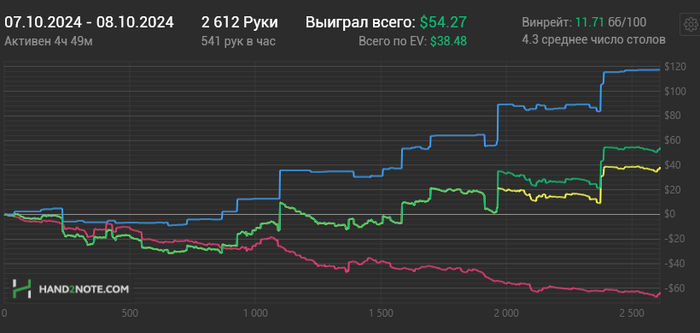 Условия: я откатываю до конца года 45к рук с винрейтом по ЕВ в 8бб/100 или выше. Если винрейт будет ниже - я перевожу одному из пользователей, которые лайкнут эту запись 30юсдт. Также перевожу деньги, если не откатаю 45к рук.