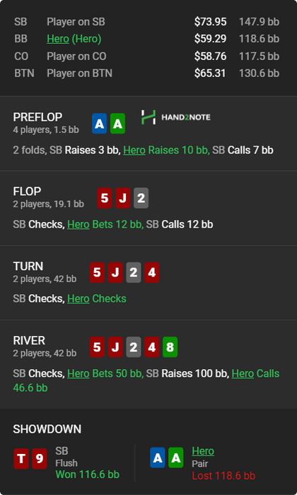 Но да, оказывается после чек/чек на терне есть сверхразумы которые могут чекнуть еще и ривер с флэшом.