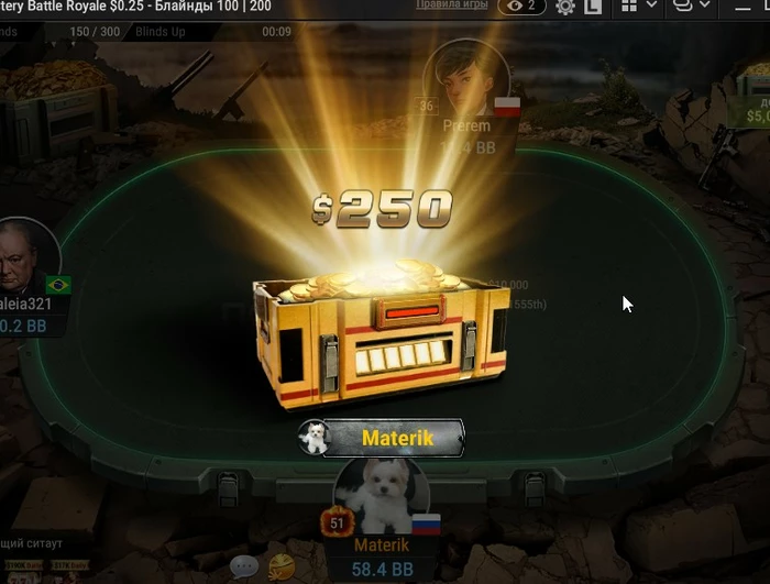 Итог, очень понравилось поле. Играть буду, единственно за 88 явно не мой лимит, поэтому буду покатывать там свои микросы, если подарят еще билетик, не откажусь. Уж очень сладкая игра. Из особенностей, на кбет никто не сдается, сдаются на продолжение агрессии, очень часто не выкидывают 2-3-4 пару, меня пару раз откалывали по Кхай, это и помогало мне держаться. Вроде как я прошел дальше всех, кого я знаю и кому давали билетики. В след раз думаю уже попаду в призы, если ГСЧ не повернется попой. А так пока там буду играть 1-2 турика в сессию по своим лимитам.
