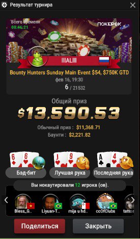 😎Под этим сообщением, вы можете оставить заявку на участие. Просто напишите в комментариях информацию о турнире: его название, бай-ин и место, которое вы заняли.