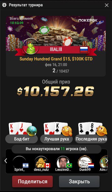 ✉️ Под этим сообщением вы можете оставить заявку на участие. Просто напишите в комментариях информацию о турнире: его название, бай-ин и место, которое вы заняли.