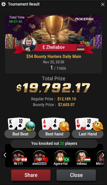 🔗 Провели разбор топ-1 с финального стола в Bounty Hunters Mini Main за $5,4 и пообщались с нашим участником.