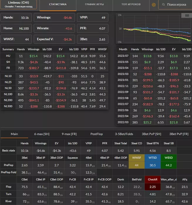 Очень интересно читать и видна работа и прогресс. Сам отыграл миллионы раздач в своё время и знаю, как тяжело это бывает моментами. Играл 100НЛ (основа), самый большой стрик был -4000. Вот я там прифигел, что такое бывает при 3-4Птбб на 100 рук, 6 макс. В покере бывает всякое ) От этого менеджмент важен, важно не путать себя иллюзиями после удачных месяцев, а просто быть машиной и катать, оценивая результаты годами, а не месяцами. Важно не зазнаваться, не "верить", что так будет всегда после удачных месяцев, не принимать в себе "лёгкость" полученных денег, даже если порой так кажется. Так будет не всегда.