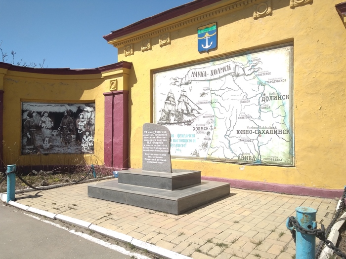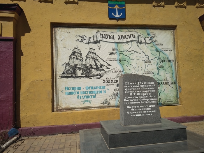 Вертикальный якорь; Рак в левом отделе / многолучевая стилизованная свастика с дельфинами в углах.