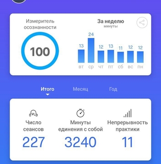 5) Медитировал каждый день. Рекорд был 11 дней подряд, сейчас уже 10, планирую до конца месяца, любопытно посмотреть, что будет. Думал еще попробовать 2 раза в день, утром и ближе к вечеру, но что-то всё вылетает из головы, вечером больше внимание забирает катка