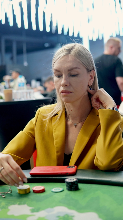 Илья Баранников с ранней позиции рэйзит 80К, все пас, Федорова Тамара(СО) пушит 486К. SB и BB пас. Илья Заранее извиняется и колирует ставку Тамары.