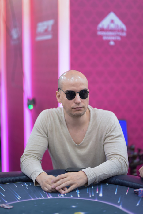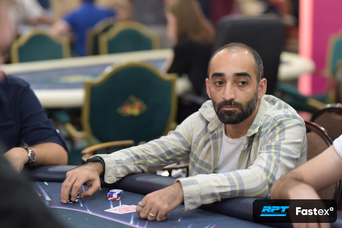 Вагон экшена уже на флопе , но терн и ривер помогают Абгаряну удвоиться. Пересчитали стеки, у Пышкина на пару блайндов меньше, Михаил выбывает из турнира.