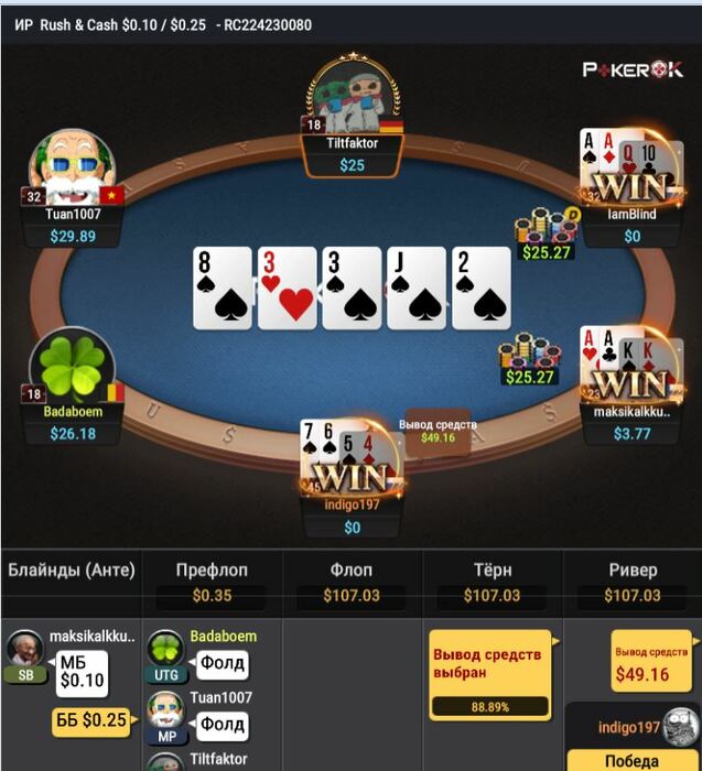 indigo197, ВПИП у тебя заоблачный. В скринах твои руки, которые в принципе не играют. Что мелкие пары, что одномастные связки без туза. Стритфлеши ты будешь ловить крайне редко. Не рекомендую даже от короля тянуть флеш. На четыребет есть смысл сбрасывать пару королей против типов со впипом 24. Там всегда будут тузы.