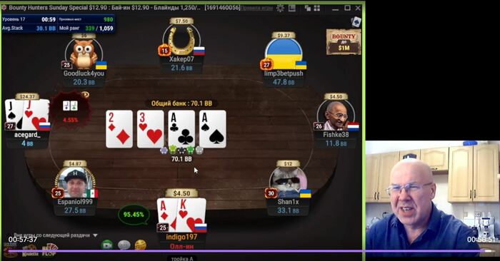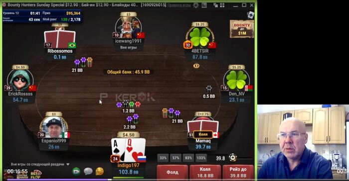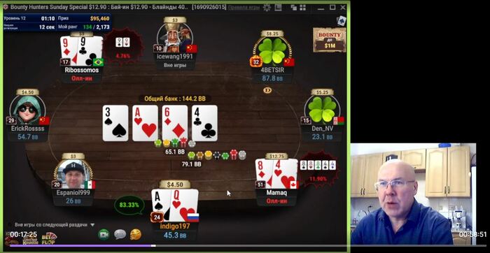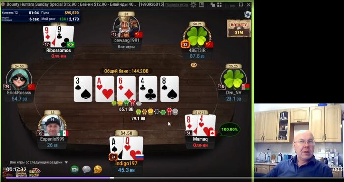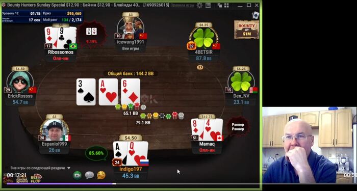 Не зря посидел в вами с 19 до 3 ночи. Получил удовольствие от достойной игры и от противостояния автора всему игровому покерному сообществу на Покерке. Стример - Валерий поддерживал общение с тремя зрителями ( на пике трансляции аж с 5-ю!!!), не забывая про игру. Действовал обдуманно, иногда слишком тайтово, не изображая у себя натс каждую руку. Но коллективно привили большую долю агрессии и веру в то, что и без карты можно забирать банки на терне отложенным конбетом.