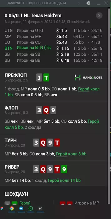 С учётом имиджа оппонентов и их адского телефонизма, изолейт бы их только раззадорил и я окажусь в разогнанном мультипоте с сомнительной рукой. Потом, я не ждала подвоха от блайндов. (Если бы на блайндах сидели реги, эта рука отправляется в автофолд). А так у меня хорошая выгодная позиция.
