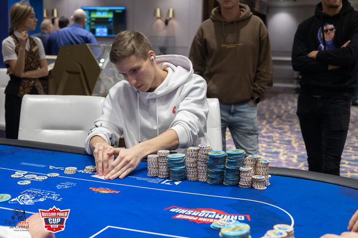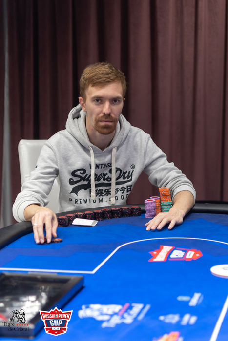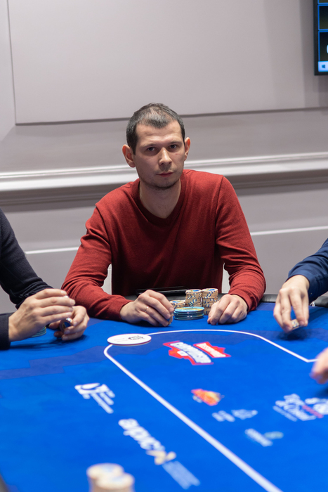 Матвей Мануйлов (огромный чиплидер с 2/3 всех фишек турнира) сыграл комплит, Александр Пак на BB чекнул.