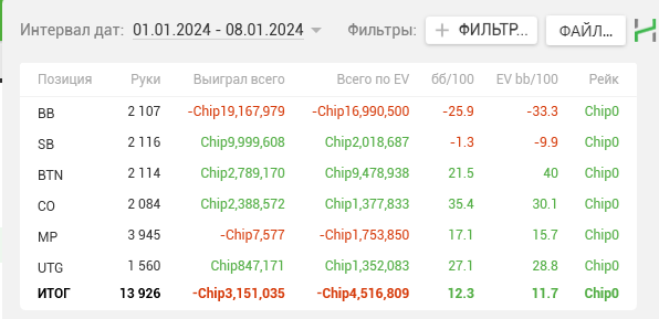 Посмотрев статистику по верхам сразу заметил одну вещь - есть недодача. Не критичная, но ощутимая. Да, неприятно, когда такое случается именно в тех турнирах, которые с лёгкостью могли б обеспечить профитом на полгода вперёд (если речь про какие-нибудь серийники на ГГ или венике с $10 000+ за первое) или же просто отмазать мейк (любой турик в любом руме с бай-ином более $15 и $1 000-$2 000 наверху), а ты ловишь недодачу именно в них (ну типа в пятидолларовых ушатывайте, а в дорогих дайте доехать 🙃). Но это покерные реалии и их лучше просто принять, чем оспаривать