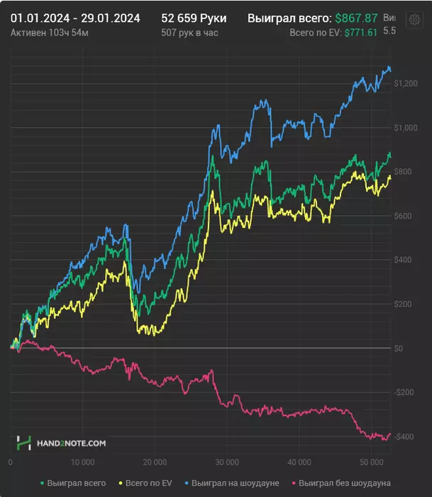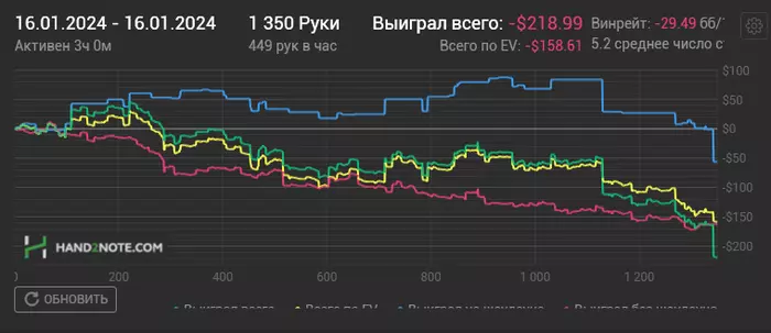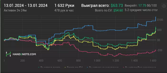 Hikaru @ 02.02.24lazy_dog, хахаха, да ладно, без скрипта селектить анонимное поле грубо говоря в 6-7бб/100, не поверю, или ты людей за тупых держишь? Я с тобой пересекаюсь на НЛ20 каждый день, я использую скрипт, а ты нет и умудряешься сидеть так же с фишами, смешно... Сколько у тебя % игры с впип 60+ за январь 52659 рук, уверен больше 60%.