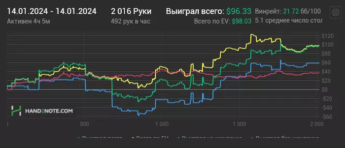 В целом сегодня поспокойнее играл явно, если в первый заход было давление и легкий мандраж, то сегодня было попросту поебать. Кассу и х2ноут не чакал, понимал что в плюс катаю и значит нехуй туда смотреть