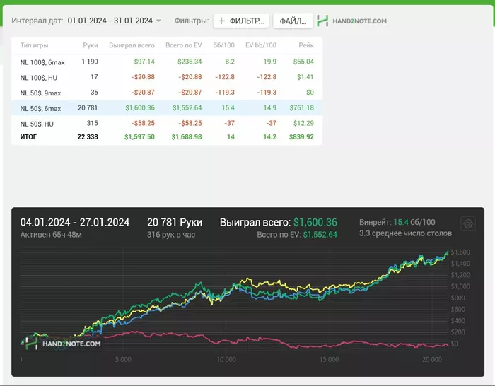 Месяц прошел хорошо. Учитывая, что конец года я провожал в состоянии полной неопределенности, без четного понимания: начнет ли мне раздавать нормально на 50-ке или нет? Это было пиздец важно, ибо был почти без БР, на бэкинге, а без роста по лимитам я бы просто играл-тратил на еду\жилье, без малейшего шанса отложить и жил бы так по кругу. Ужасно - грустная перспектива. И я ни разу не преувеличиваю. Даже сейчас расслабляться сильно рано.