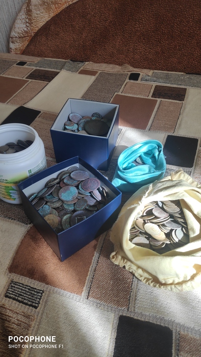 Надо бы как то нормально всё рассортировать, но всё руки не доходят) И здесь не совсем все, что то отмокает в мыльном растворе (так снимается зелёный оксид меди с монет) и я забыл про серебро) Спешу расстроить, серебро не чистое, монеты как правило чеканились из низкопробного серебра, так что переплавлять если кто то подумал смысла нет, и вообще это варварство!