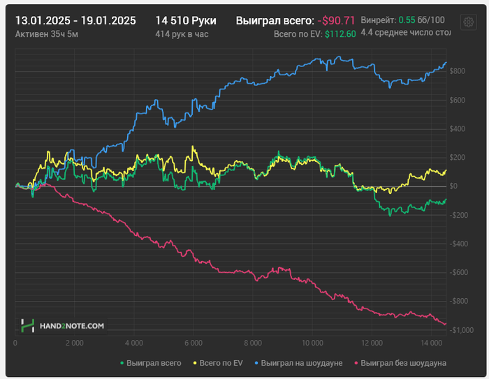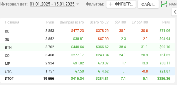 Стал просматривать раздачи с фишами и делать понятные нотсы, "кто он" и "каким образом переигрывать". Это принесло плоды. Буду теперь этим плотнее заниматься.