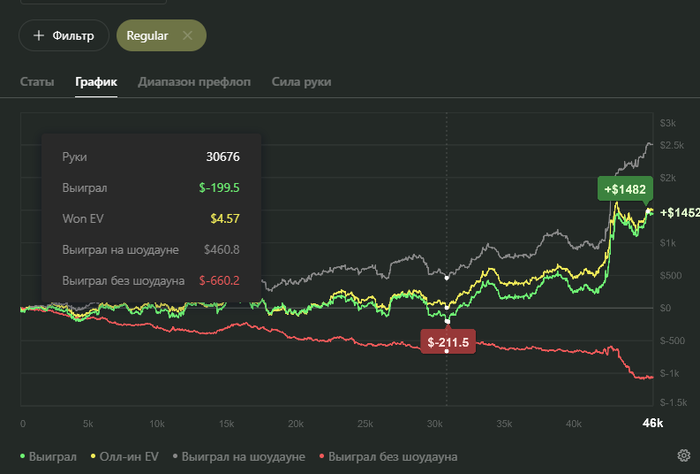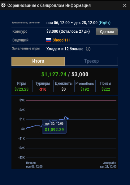 Поэтому я принял решение, даже если мой БР будет больше 2000$, то до конца этой недели я играю только нл25-50. И на нл100 ни ногой. Буду просто кайфовать.