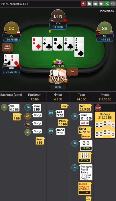 Флоп тайм банк, не успел подороже накрутить. Терн стрит закрылся, а ривером флеш. Ривер захотел Бет/фолд сыграть