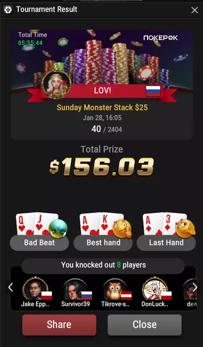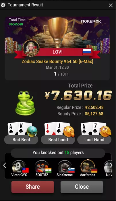 И еще, впервые вижу, чтобы по окончанию турнира предлагали лудку, по типу угадать цвет карты и удвоить призовые Я конечно же не лудик, поэтому просто забрал. Потом как-нибудь попробую ушестнадцетерить на самом мелком итме