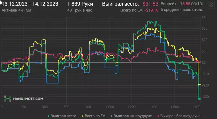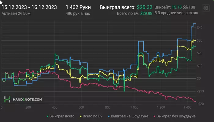 2)В воскресенье небольшая сессия без выхода на верхний лимит(нл20) и с понижением количества игровых столов до 4-х.Обязательная концентрация на борьбе с психологическими барьерами изложенными выше.