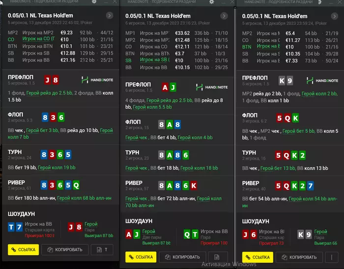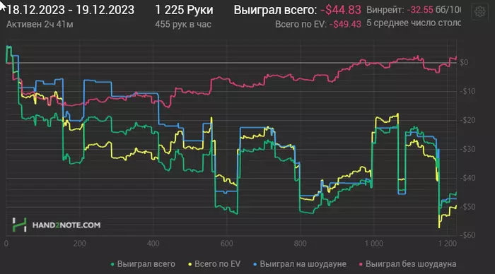 1)В попытках поймать удачу за хвост я стал явно чаще влезать в мультипоты и 3-бет банки с руками,которые не входят в мою префлоп модель."Творчество" подключил,скажем так.