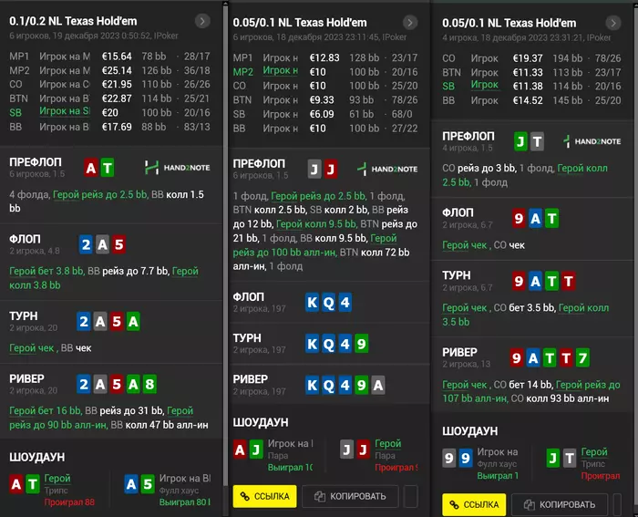 Блефы мимо,випы собирали комбы сильнее,короче сессия шла ужасно,вот некоторые раздачки:
